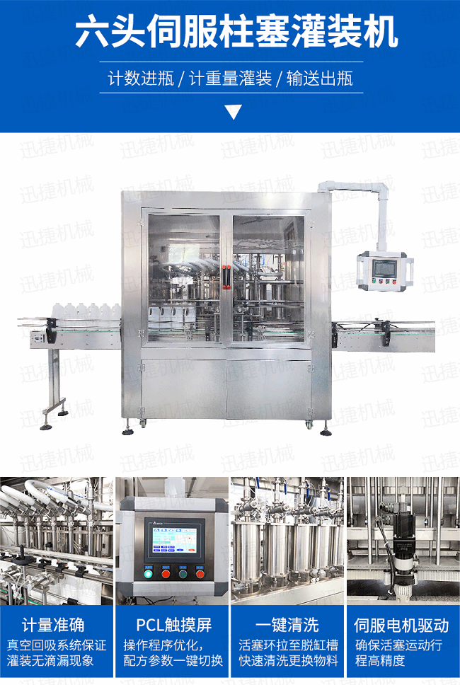 全自動16頭伺服柱塞灌裝機是我公司精心設計的新款灌裝機,本伺服柱塞灌裝機,采用PLC和觸摸屏自動化控制,具有計量準確、結構運行平穩(wěn)、噪音低、調節(jié)范圍大、灌裝速度快等優(yōu)點。而且對易揮發(fā)、易結晶、易起泡的液體;對橡膠、塑料有極強的腐蝕的液體,以及高粘度的液體、半流體都能適應。在人機界面數字化調節(jié)計量,并且可設定100ml或200ml等所需計量,觸摸屏一觸即達,而且可以單頭微調計量。