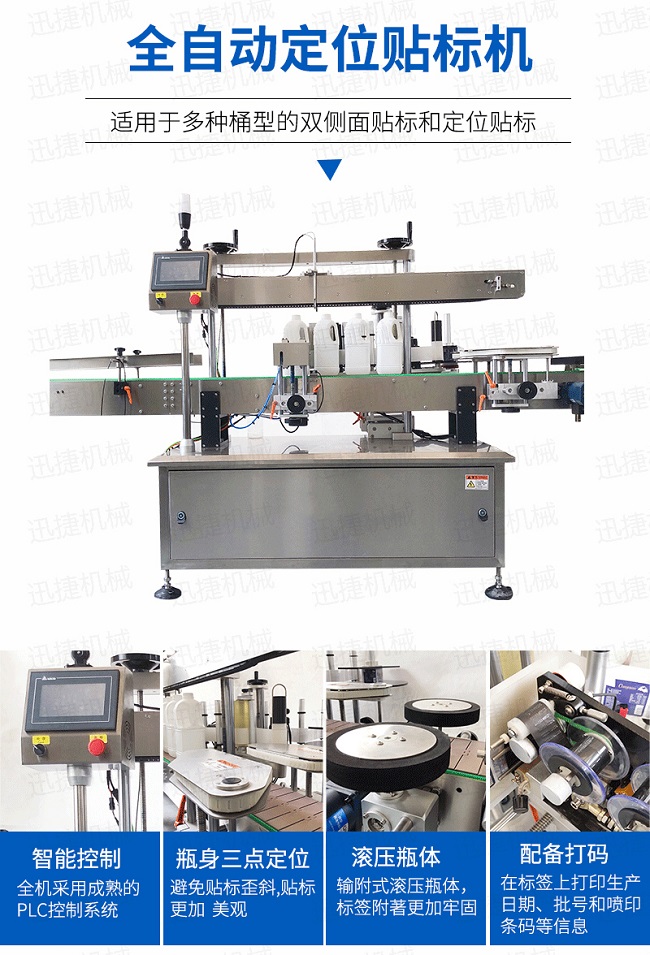 全機采用微電腦-PLC-電子光纖傳感器控制系統(tǒng),使整機運行穩(wěn)定、高速操作系統(tǒng)采用操作界面控制,操作簡便、實用、效率高,并有產量記數功的速度快且穩(wěn)定適用范圍大,可用于各種尺寸的圓形瓶貼標輸附式滾壓瓶體,使標簽附著更加牢固前后段可選連線使用。