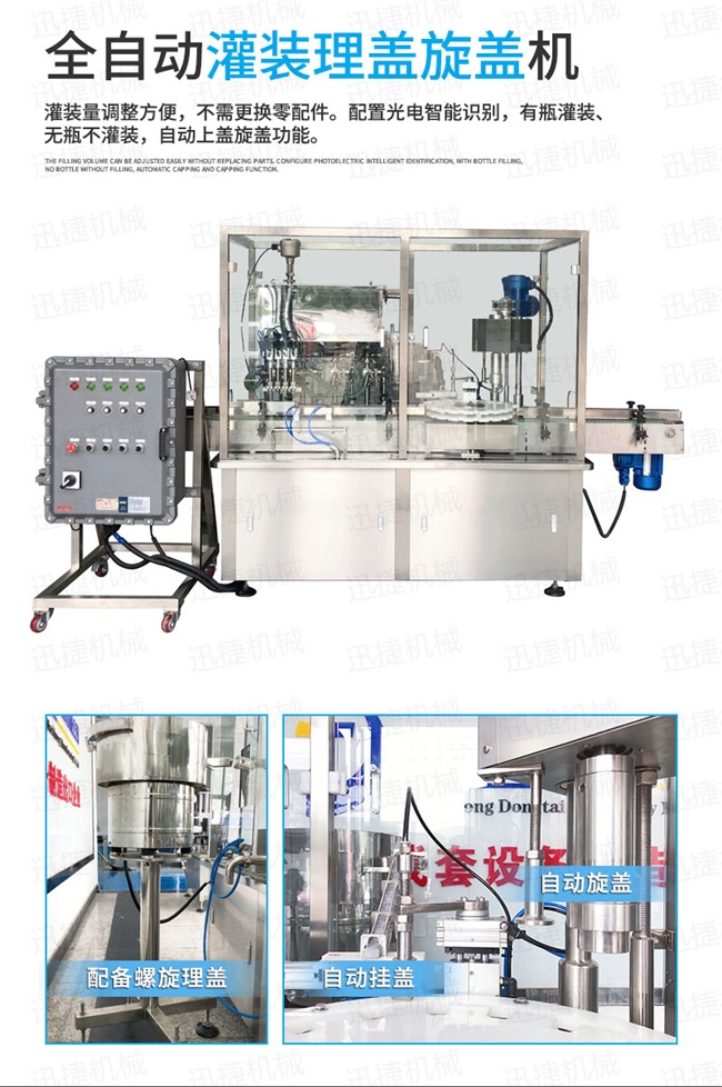 4、具有無瓶不灌裝、自動進(jìn)瓶出瓶、自動定位灌裝、自動控制液位等功能,自動化程度高;該全自動酒精消毒液灌裝機(jī)灌裝嘴設(shè)計科學(xué)合理,配防滴漏裝置,灌裝不滴漏,擁有物料瓶及設(shè)備的干凈衛(wèi)生。