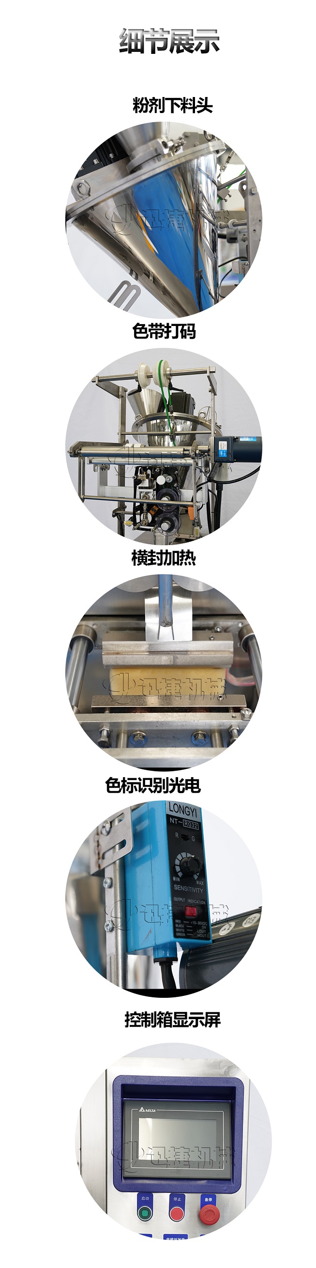 粉劑包裝機,可完成三邊封、四邊封、背封、異形狀袋形,可對粉末狀狀物料進行定量包裝。